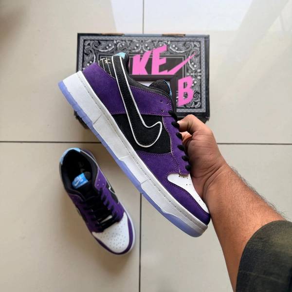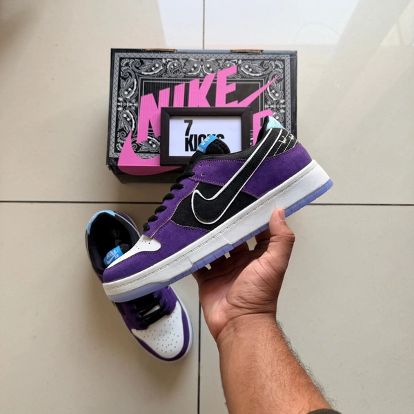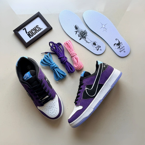Step into style with the DUNK HAYLEY WILSON - a sneaker that's as bold as it is beautiful! This eye-catching design blends purple, black, and white in a stunning color palette that's sure to turn heads. The crisp white swoosh outline adds a perfect touch of contrast, making these kicks stand out from the crowd.